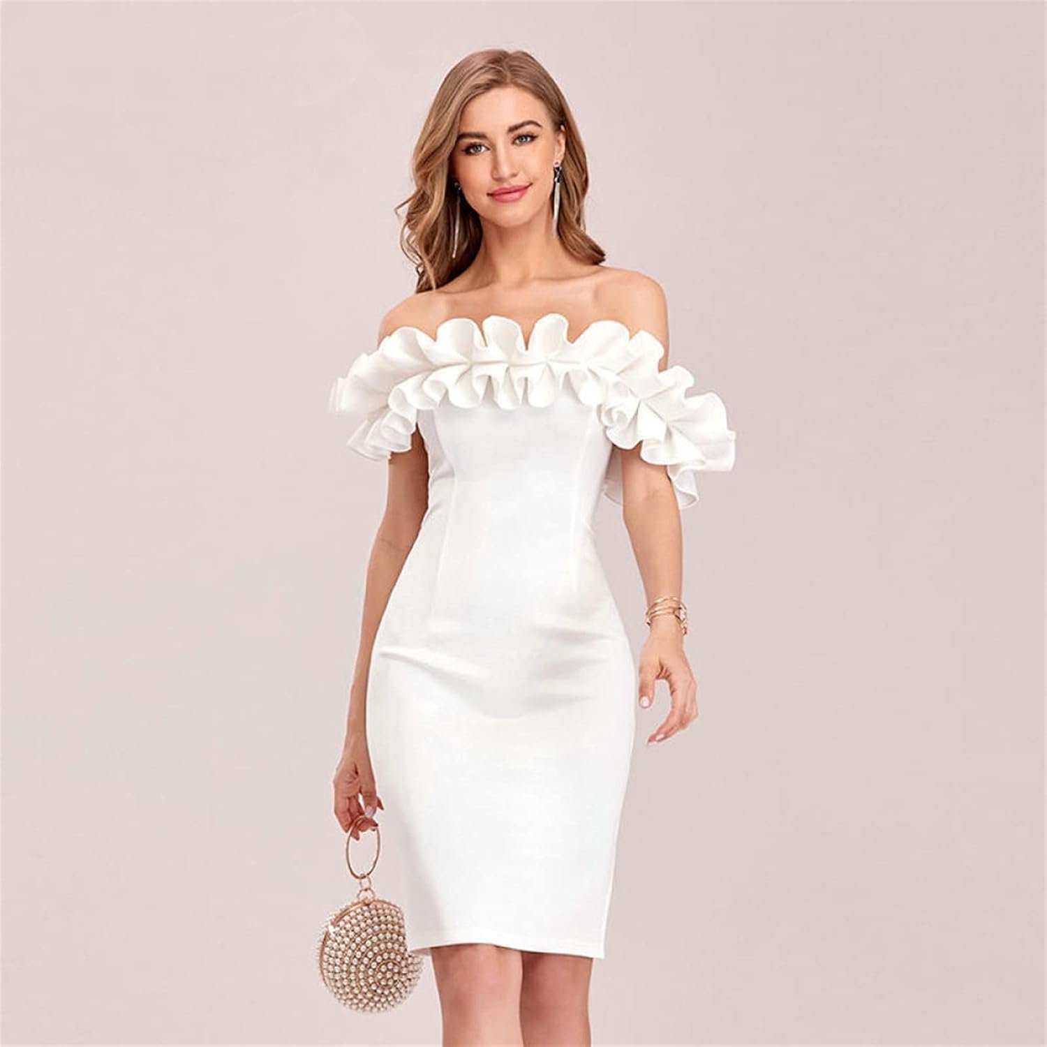 Vestido elegante hombros descubiertos con lentejuelas en pecho